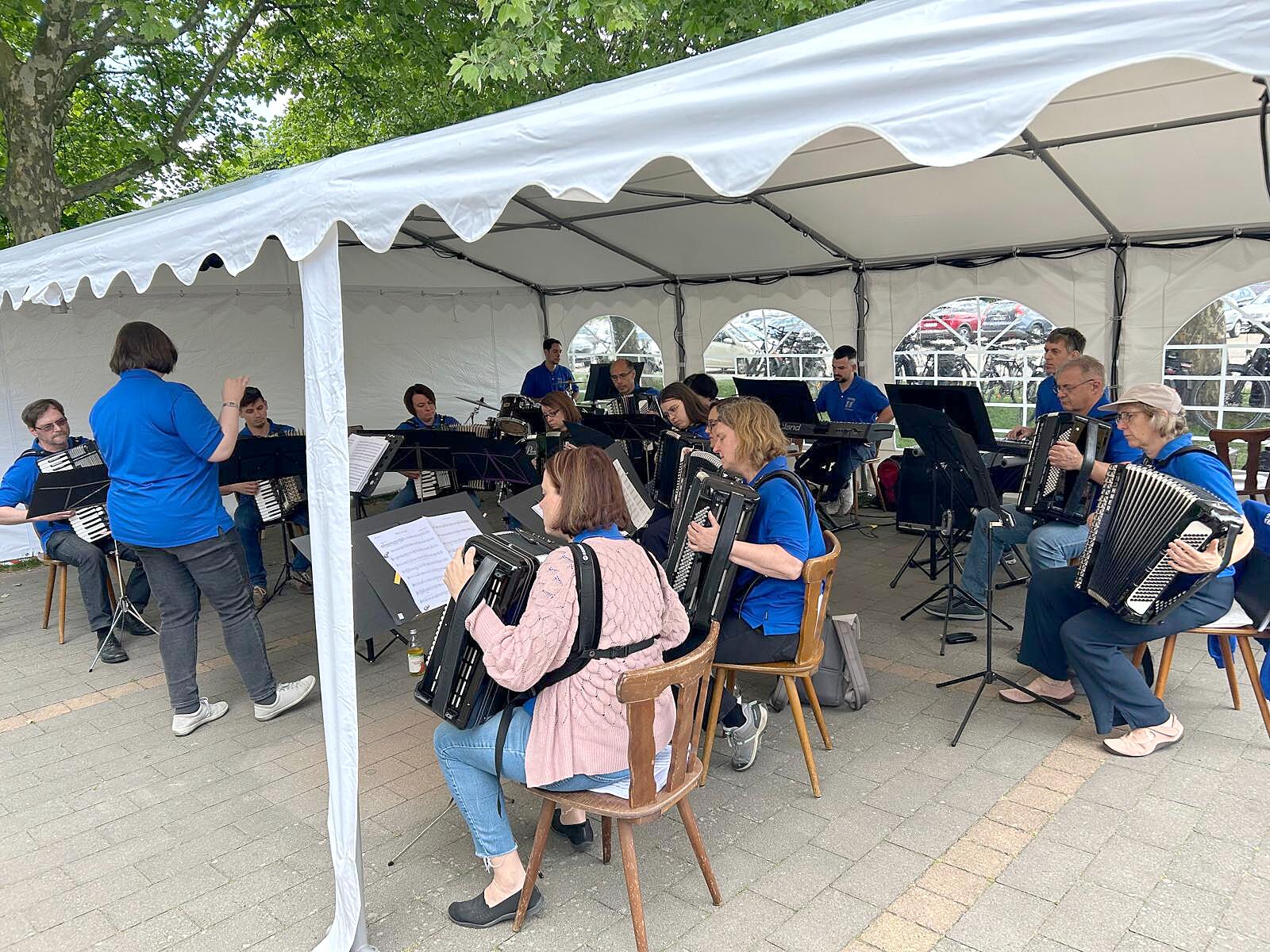 Am vergangenen Wochenende war der Harmonika-Spielring Bietigheim zu Gast beim Kelterfest in Muggensturm. Bei strahlendem Sonnenschein und bester Stimmung boten wir den zahlreichen Besucher/innen ein abwechslungsreiches musikalisches Programm unter freiem Himmel.