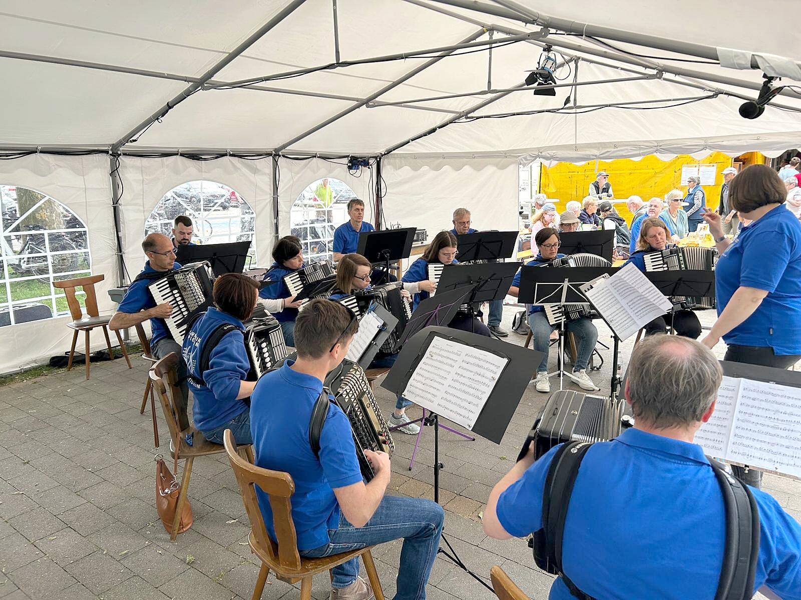 Am vergangenen Wochenende war der Harmonika-Spielring Bietigheim zu Gast beim Kelterfest in Muggensturm. Bei strahlendem Sonnenschein und bester Stimmung boten wir den zahlreichen Besucher/innen ein abwechslungsreiches musikalisches Programm unter freiem Himmel.